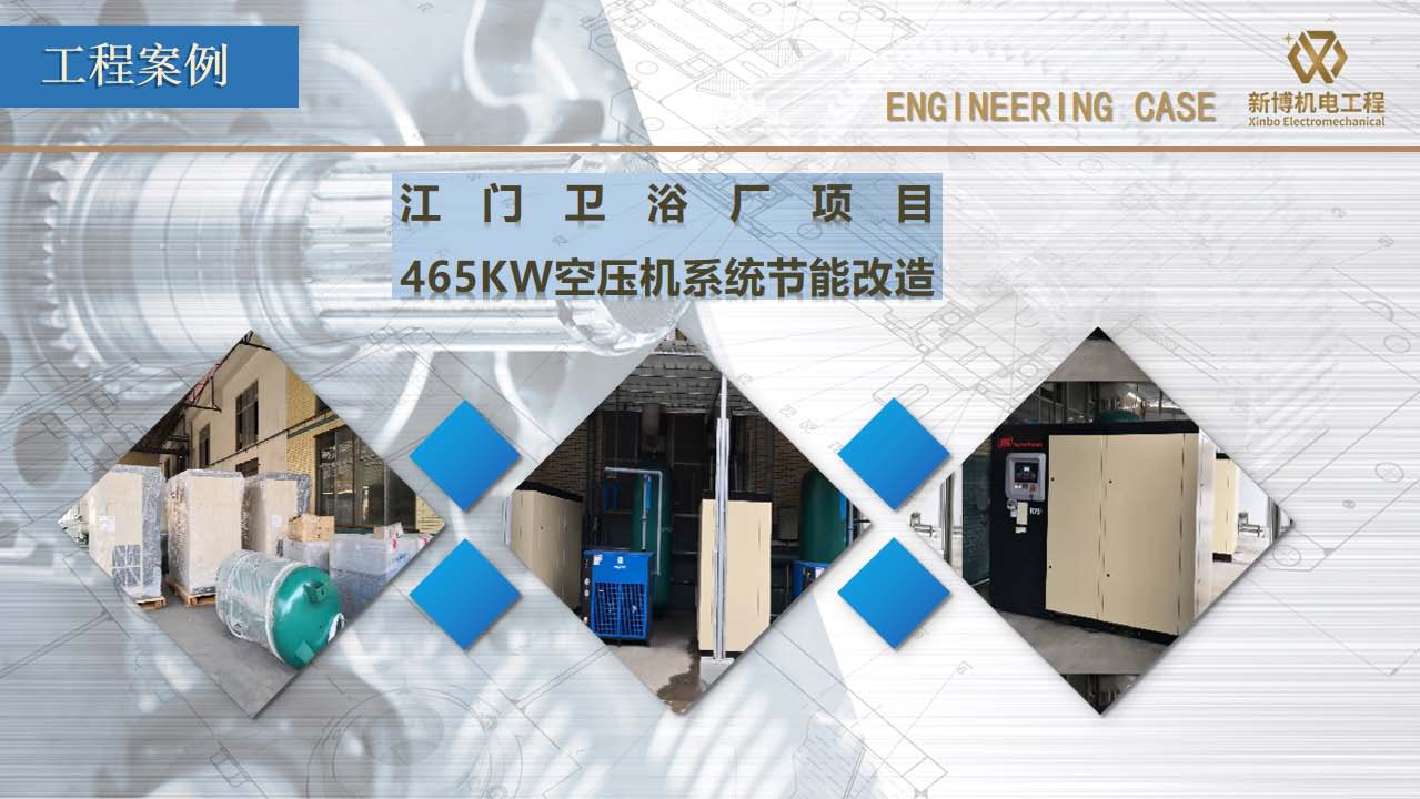 廣東新博機電工程有限公司成立于2010年6月,是一家集設計、研發、銷售、安裝工程及售后服務于一體的專業機電工程服務公司,經營產品包括空氣壓縮機系統設備、真空系統設備、制冷系統設備及其系統設計、安裝與維保服務;公司同時從事壓力管道、低壓配電、潔凈無塵車間的設計、施工與安裝工程。